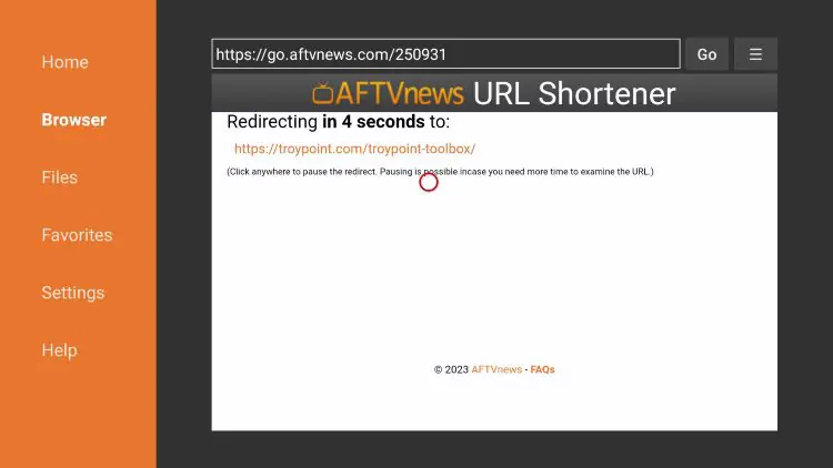 4. Wait for the redirect page to load.